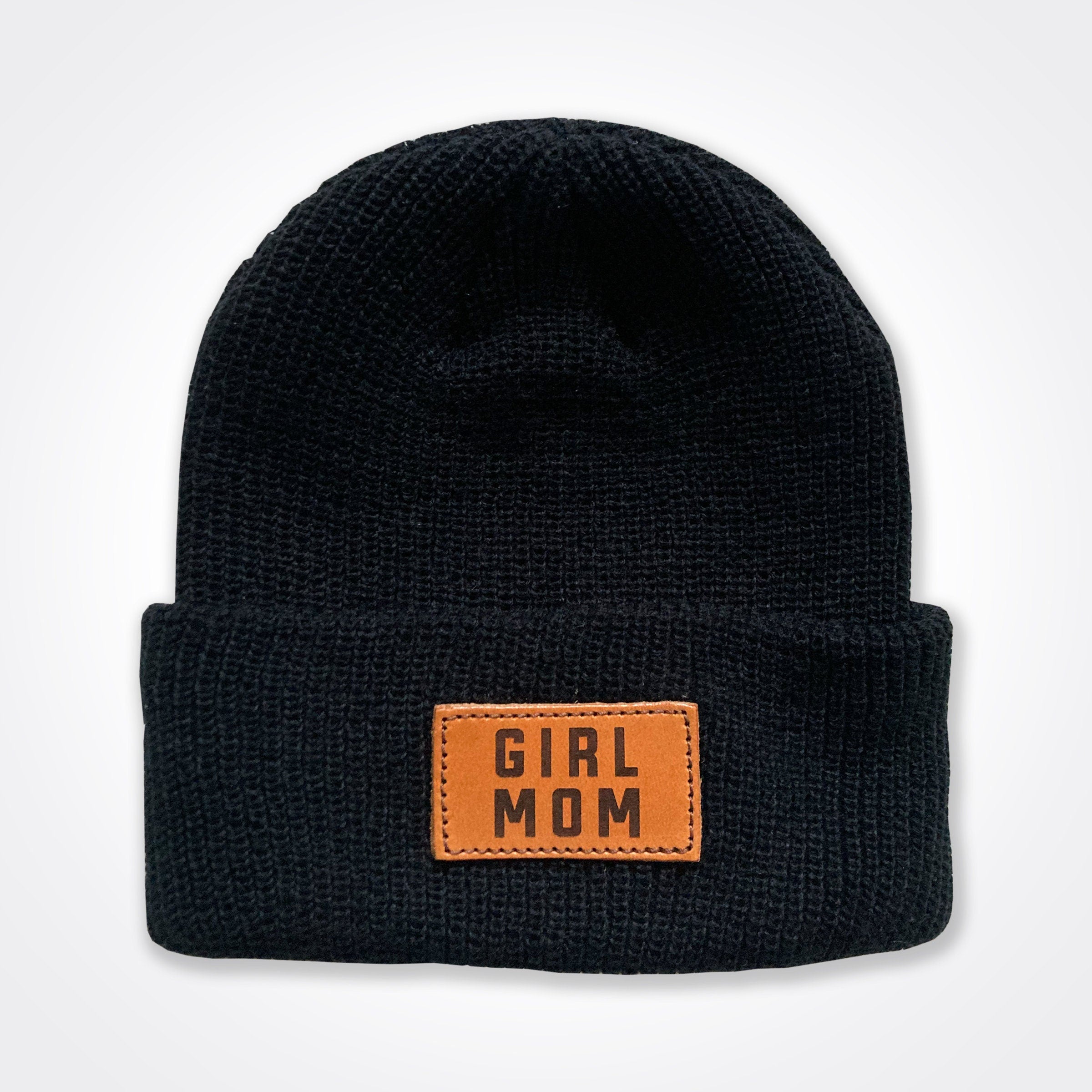 Girlmom® Leather Patch Classic Beanie In Light Grey, Black, & Grey• Ribbed cuff knit beanie that is loosely knit.• Classic... Read more