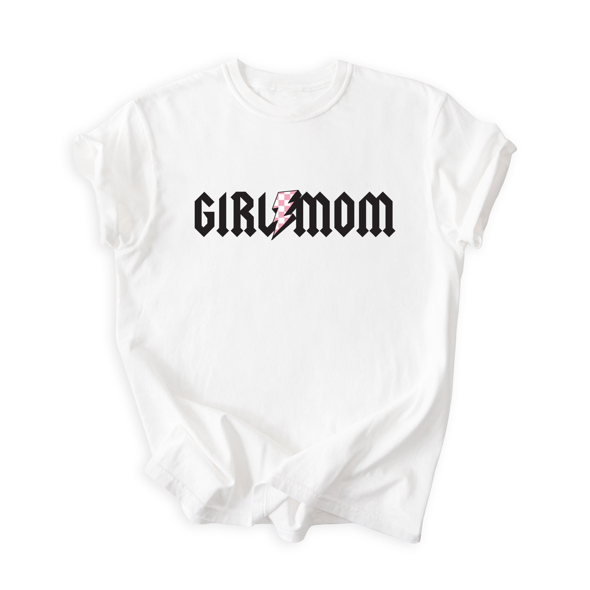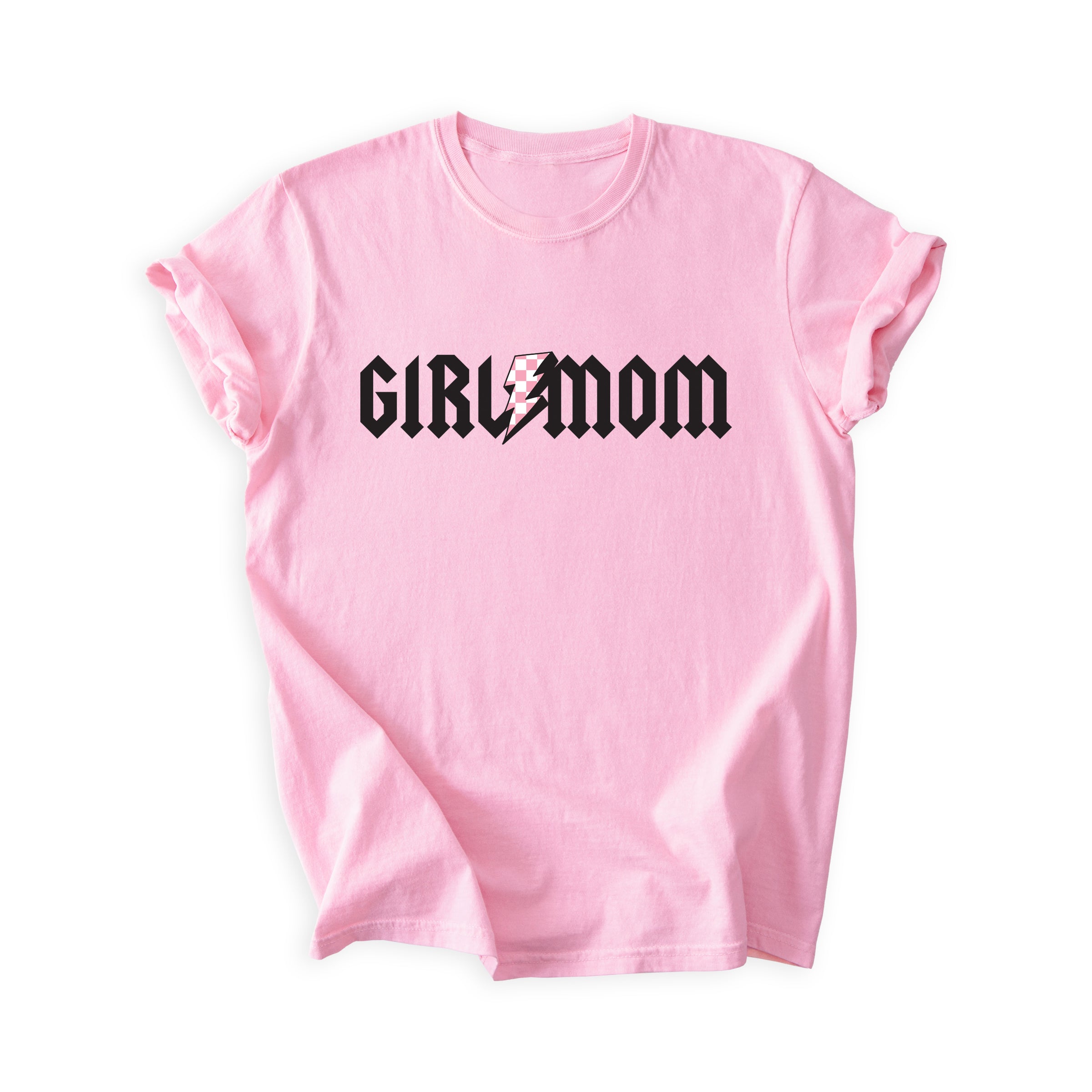 GirlMom Pink Checkered Bolt Tee